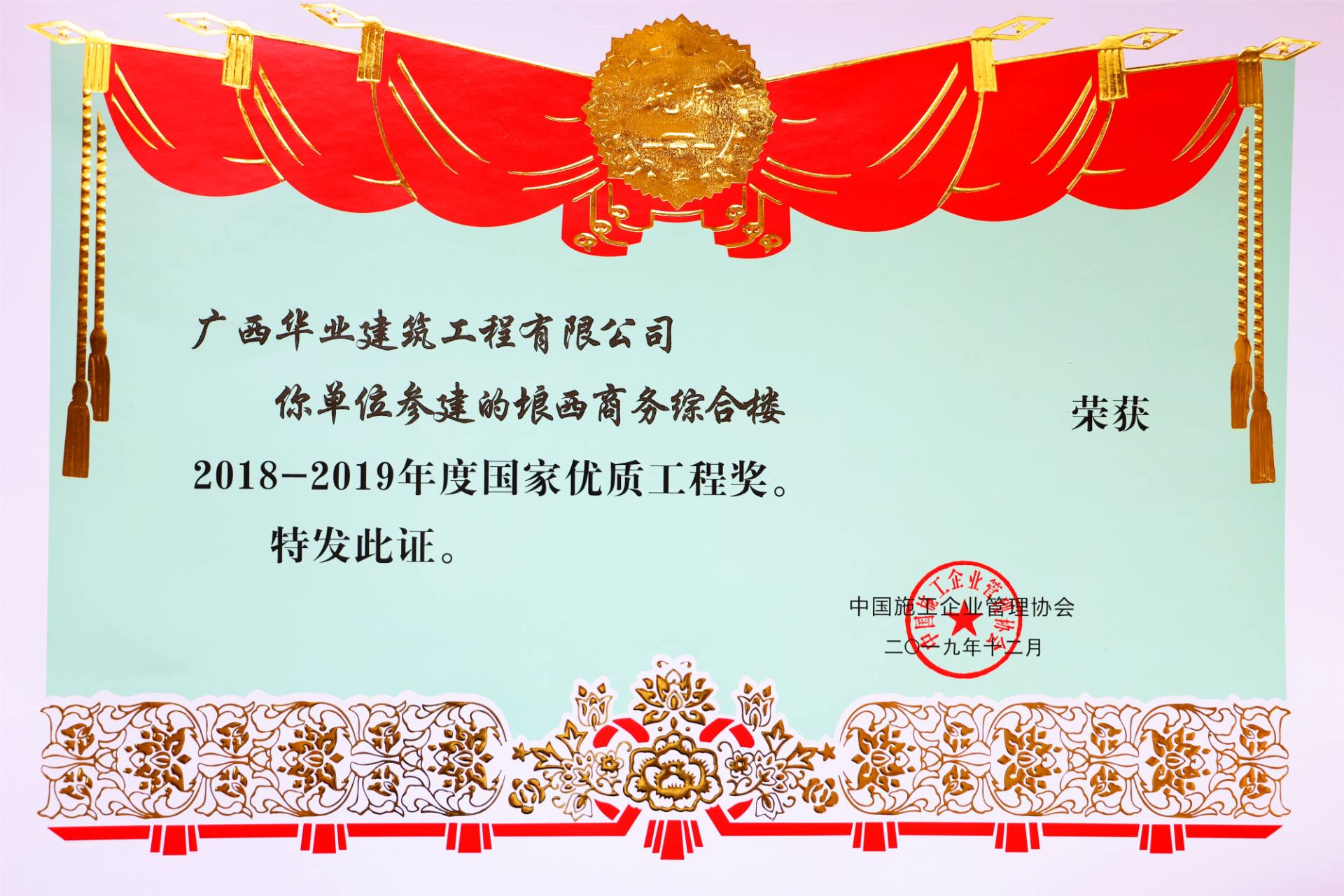 項(xiàng)目榮譽(yù):2019年全區(qū)建筑施工安全標(biāo)準(zhǔn)化觀(guān)摩項(xiàng)目 -